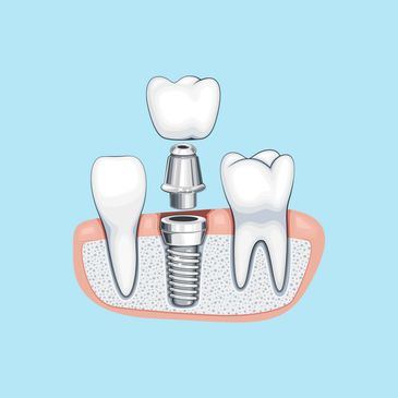 Restoring missing teeth with titanium fixtures - tooth-coloured crown will be placed after the fixture has integrated (partially Medisave-claimable)